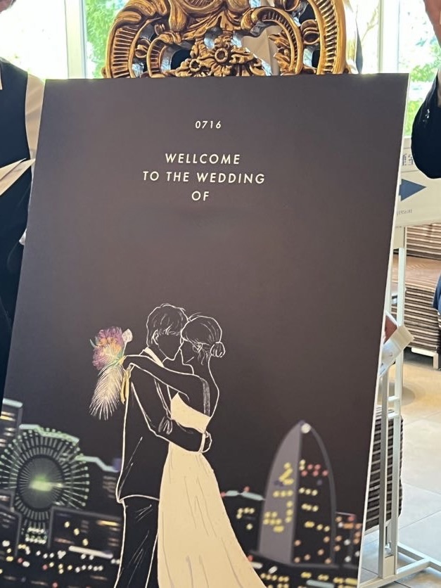 会場に着き受付に行くと、私が描いたウェルカムボードが飾られていました。