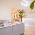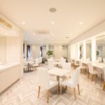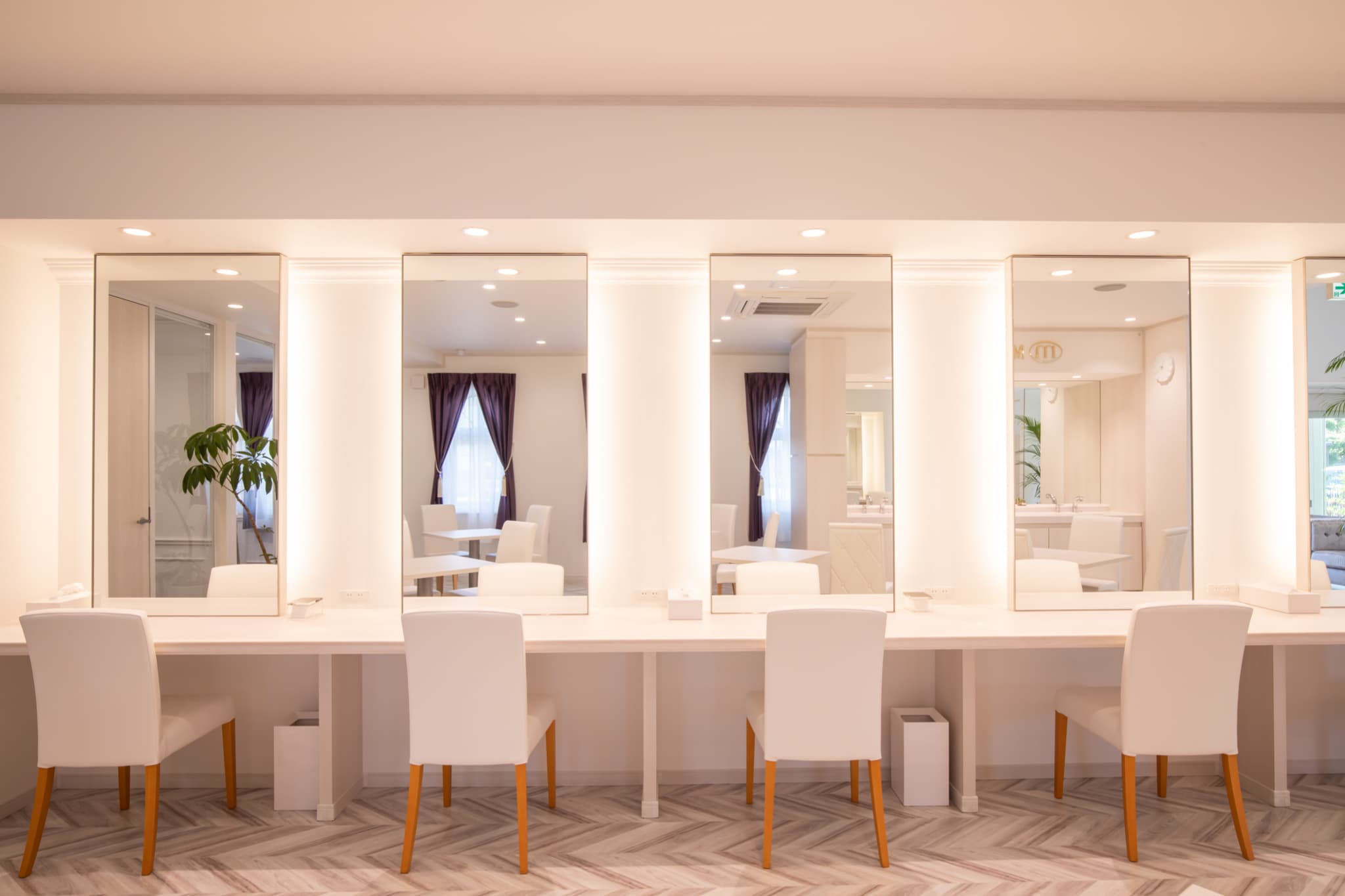 店内は大人のリゾート地をイメージし、真っ白の空間に植物やカーテン差し色が映えるように仕上げました。